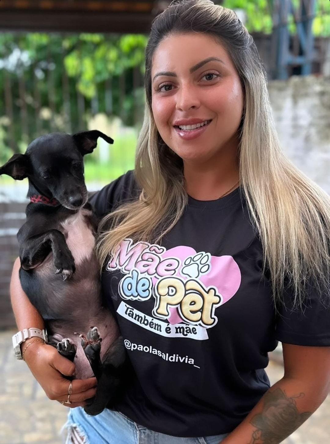 Camiseta com estampa “mãe de pet também é mãe”, 100% poliéster fio 30.